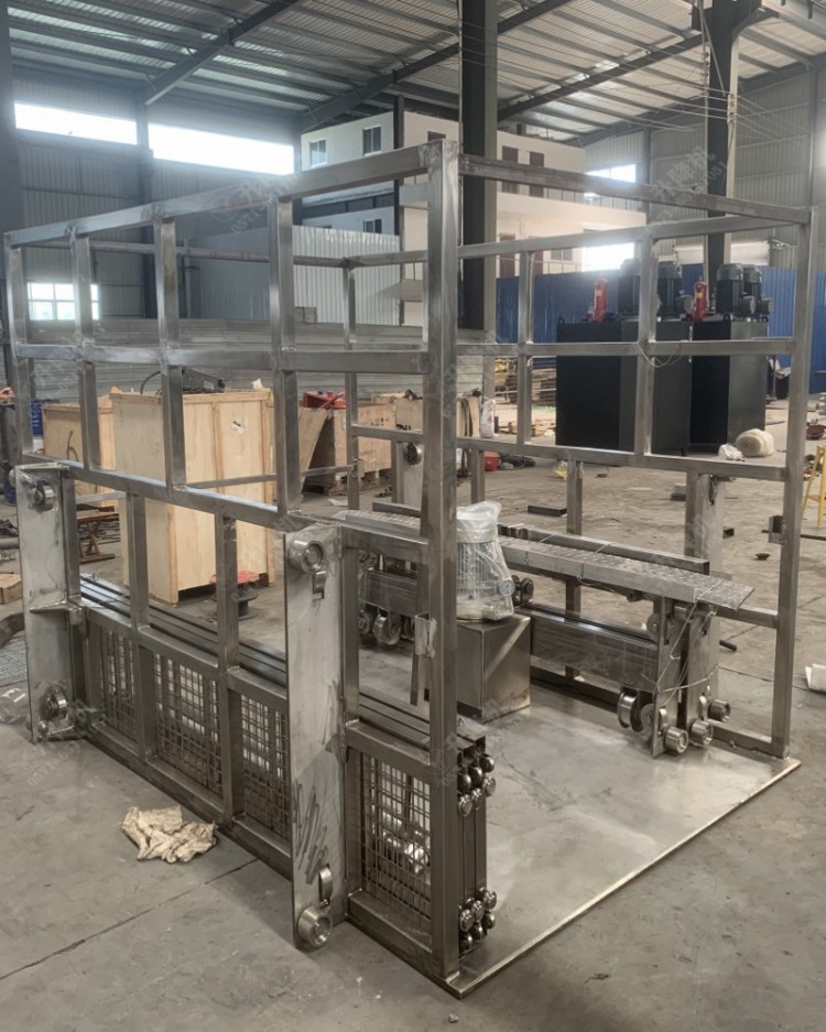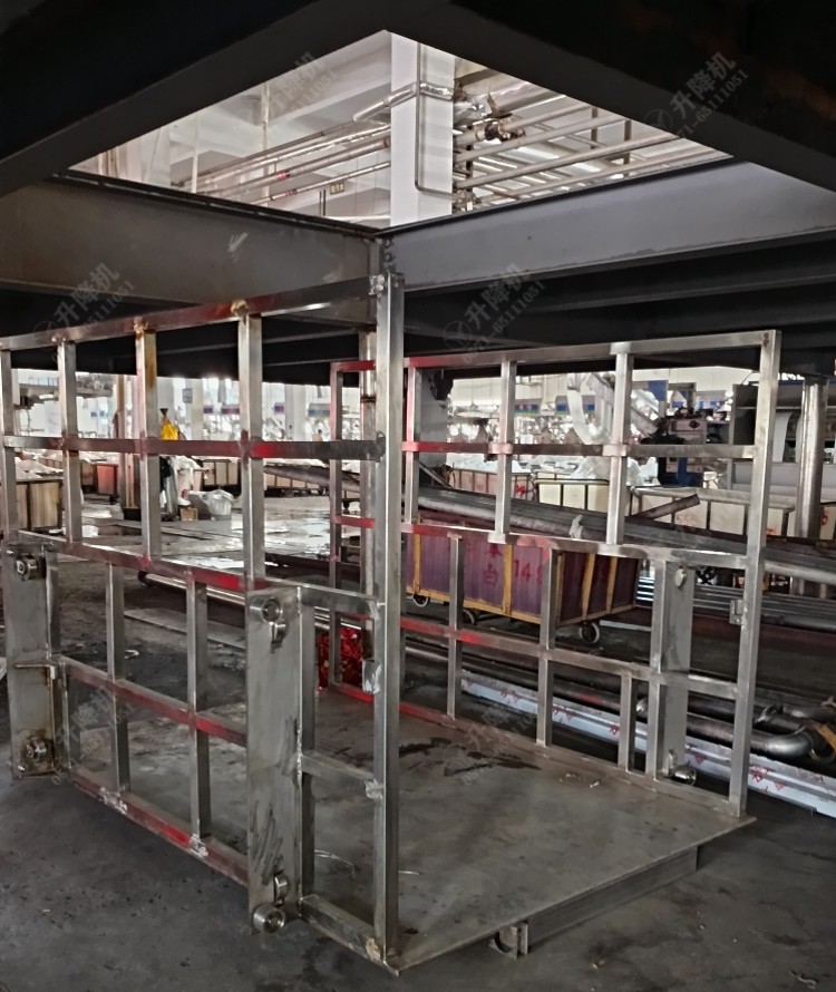 全不銹鋼升降機,整機不銹鋼升降平臺,不銹鋼升降機 這是一臺整機不銹鋼升降機,導軌、油缸。油泵站底座、配電箱、平臺、升降網(wǎng)門,可以說能用不銹鋼的全部用不銹鋼的。因為現(xiàn)在是印染廠的染色區(qū)域,老板說要周圍環(huán)境要用液酸,液酸對鐵腐蝕很厲害,使用沒有辦法只能用不銹鋼,而且不挖地坑,平臺用16mm不銹鋼整板,成本可能比平臺的高三倍。 型號:SJD2-2.8m 提升高度:2.8米 實際載重:2噸 油缸:2只Φ80液壓油缸 油泵站功率:1只4kw 主鏈條:鏈條16b,共4條 地坑開口:地坑開口寬2400mm深2800mm,寬2400mm方向進出貨 平臺尺寸:平臺1800mm深2700mm(含護欄尺寸) 開門方向:寬1800mm方向進出貨 地坑深度:無地坑,地面直接安裝 機房高度:無需機房